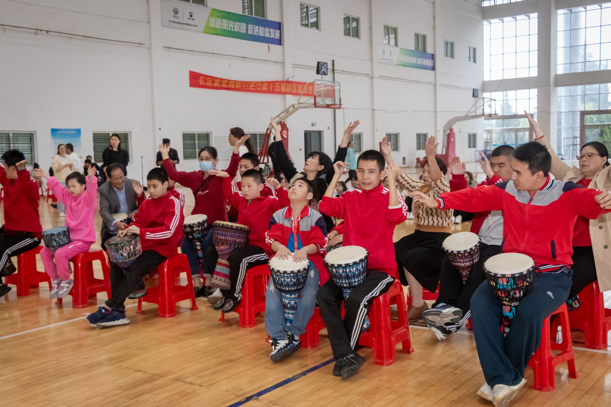 活动在合肥市庐阳区为民社会工作服务中心的孩子们带来的表演非洲鼓《中国人》中拉开帷幕。随后,张猛老师指导的武术表演《男儿当自强》为现场展示出至高、至强、至善、至美的武术魅力;徐静老师指导的健美操《逐梦青春》用欢快的节奏展现青春的骄傲和生命的旋律;郑蓓蓓老师指导的啦啦操《我和我的祖国》展现了青春的活力和积极向上的精神面貌;梁爽老师指导的伦巴舞+现代舞《再见深海》通过舞蹈剧的形式展现了自闭症孩子的处境和成长过程,令现场所有人员动容。