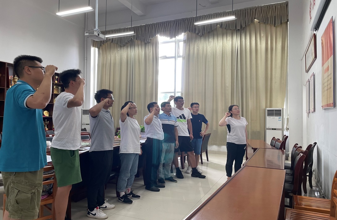 专题党课后,在体育馆党员活动室,支部书记闻剑飞带领全体党员重温入党誓词,他们面向党旗,右手握拳,庄严宣誓。铿锵有力的誓言昭示着听党话、跟党走、对党忠诚的决心和态度。进一步增强了党员的党性观念,激励着每一位党员传承红色基因,发扬红色传统,坚守初心,砥砺前行。(外围买球的app十大平台教工第四党支部)