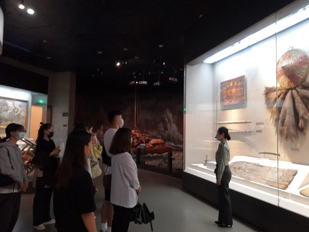 “钟山风雨起苍黄,百万雄师过大江。虎踞龙盘今胜昔,天翻地覆慨而慷。”浩瀚巢湖之滨,渡江战役纪念馆两艘战舰般的馆身并驾齐驱,展厅共分为“战前形势”“战役准备”“突破江防”“战役胜利”“人民支前”“英烈业绩”等六大部分。在讲解员的带领下,同学们首先参观了渡江战役纪念馆内基本陈列《百万雄师过大江》,全方位地了解了渡江战役前的国内外形势、渡江战役决策与部署,战役经过。一张张图片、一道道展板、一件件文物、一段段影像和场景再现,全景式描绘了400万军民奋勇向前的壮阔场景。党员们被一个个红色故事和革命先烈的英雄世界所深深打动,深刻感受渡江战役的艰险和人民解放军勇渡长江的英雄气魄。