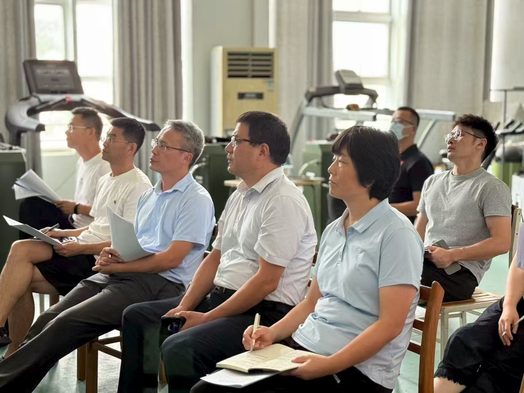 本次活动历时两天,涵盖理论讲授与运动实践等多类课程。8月27日下午,新进教师黎骉、谢奇分别就《临床康复学》“糖尿病康复”章节与《运动训练监控》“身体素质和疲劳测定”章节进行了现场教学展示。8月29日全天,听课小组先后观摩了许千里博士主讲的《体育法》、王广磊老师的《运动训练学》、谢奇博士的《运动训练监控》、黎骉老师的《临床康复学》,以及吴友良老师的《大学体育-跳绳》和徐继超老师的《大学体育-皮克球》等课程。