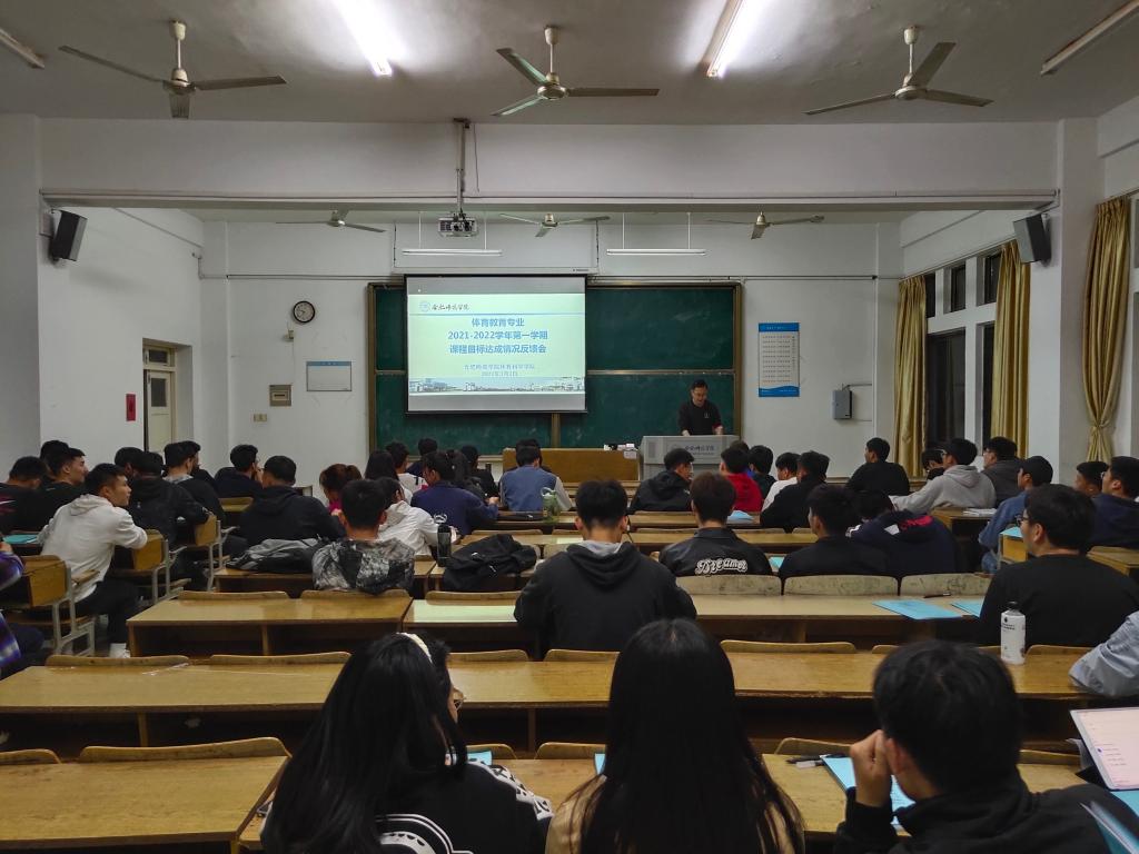 本网讯 为贯彻落实“学生中心、产出导向、持续改进”师范专业认证理念,提升教师教学改革和学生学习效果,3月2日晚,在博约楼110教室,外围买球的app十大平台召开体育教育专业课程目标达成情况反馈会。会议由体育教育系主任李晓静和教工第一党支部书记汪辉共同主持。体育教育系全体教师,2018级、2019级和2020级体育教育专业全体学生参加。