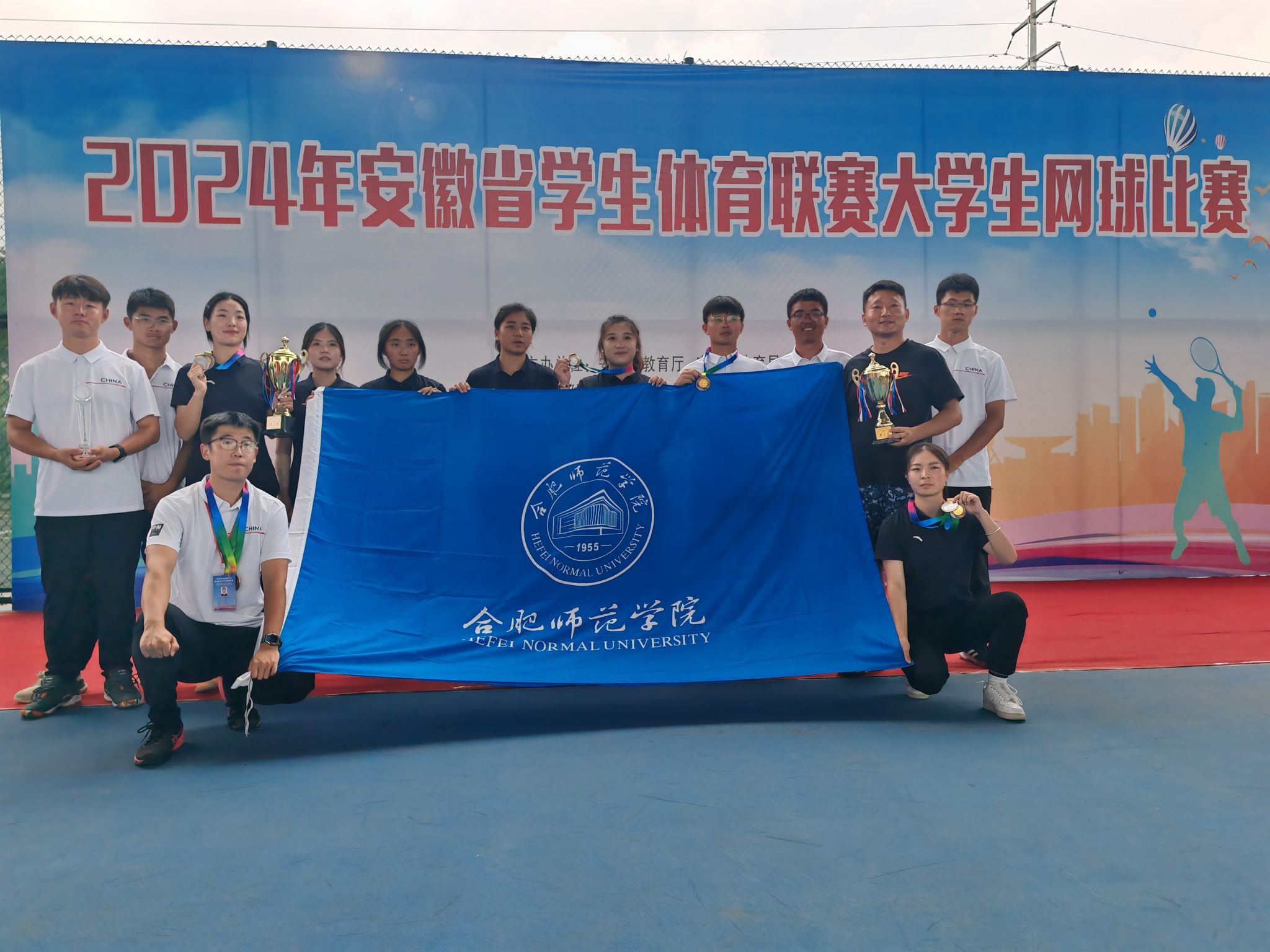 6月17日-25日,由安徽省教育厅、安徽省体育局联合主办,安徽师范大学、安徽省学校体育协会网球分会承办的2024年安徽省学生体育联赛大学生网球比赛在天长市举行。共有来自全省58所高校552名运动员参加三个组别(甲组、乙组和丙组)的团体、男单、女单、男双、女双、混双共六个项目比赛。学院网球队团结协作、顽强拼搏,斩获丙组女团亚军,丙组男团季军,甲组男团第五名,丙组男单第四、第五名,女单第五名以及女双第三、第四名的优异成绩,并荣获“体育道德风尚奖”称号。