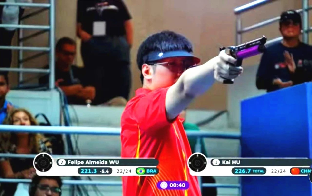 在男子10米气手枪个人赛中,胡凯以资格赛头名身份强势晋级决赛。决赛阶段,他复刻了此前阿根廷布宜诺斯艾利斯站的制胜策略——前10发即建立领先优势并全程掌控节奏。首轮10发射击后,胡凯以2.0环的绝对优势领跑全场,后续14发表现稳健,仅两枪低于10环。进入金牌争夺战前,其领先优势已扩大至5.4环。最终,胡凯顶住压力,以末两枪9.3环、10.4环的出色发挥,将总成绩定格于246.4环,强势卫冕。