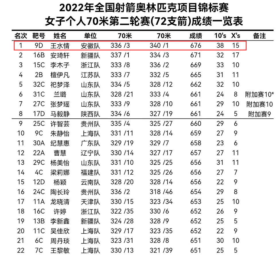 王水情还曾获得2021年全国射箭锦标赛(室外)女子个人淘汰赛第七名,2022年全国射箭冠军赛女子个人排名赛第一轮赛第五名。