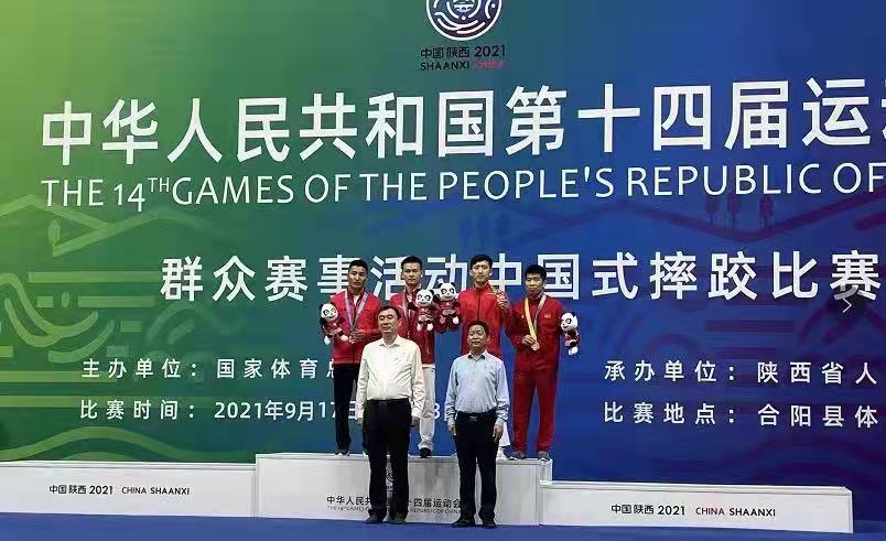本网讯 9月22日,第十四届全国运动会群众项目中国式摔跤比赛在陕西渭南市合阳县体育馆举行。买球官网2017级运动训练专业(现役运动员)徐凡夺得中国式摔跤个人单项男子60公斤级冠军,为安徽代表队再添一金。