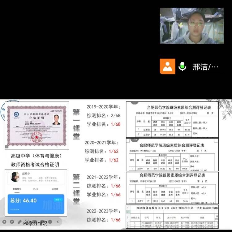 赵燕宁是2019级体育教育对口专业优秀学生代表,她结合自己大学四年的学习生活经验,讲述自己获得国家奖学金的心理历程。她在宣讲最后提醒同学们要明确大学的奋斗方向,把学习放在首位,做好职业生涯规划。