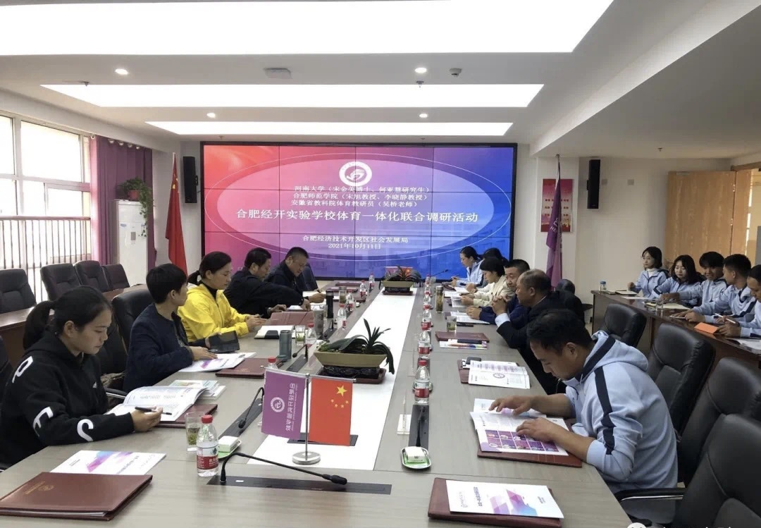 本网讯 为深化“体教融合”、推进学校体育一体化发展,促进青少年健康发展,10月11日,外围买球的app十大平台赴合肥经开实验学校参加学校体育一体化联合调研活动。河南大学体育学院博士宋金美,外围买球的app十大平台院长宋旭教授、外围买球的app十大平台李晓静教授、安徽省教科院体育教研员吴桥、合肥经开区社会发展局中心教研室主任张纪胜、合肥经开实验学校校长邵宗德、副校长刘洋等专家学者参加调研。