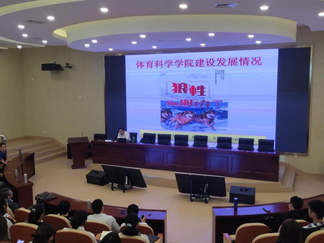 下午,外围买球的app十大平台院长宋旭,以“外围买球的app十大平台的院情及专业建设发展”为主题,向同学们详细介绍了学院学科建设、师资队伍、专业设置、人才培养等,介绍了体科院十年发展的来之不易,介绍了周庆媛、王子豪、汤飞等优秀校友,使同学们更加牢固树立专业思想,明白苦练本领才是出路,坚定对未来发展的信心。
