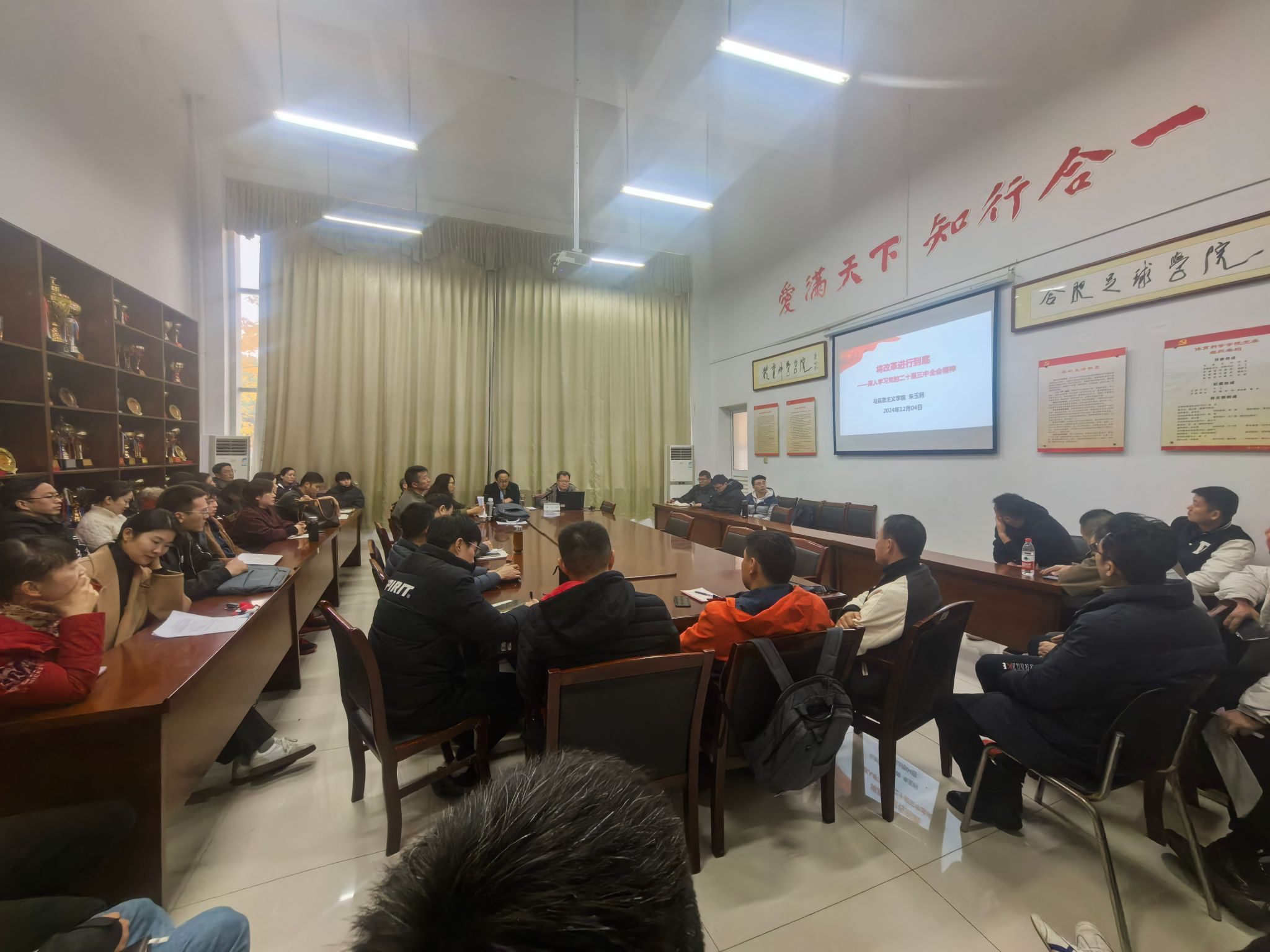 为深入学习贯彻党的二十届三中全会精神,12月4日,外围买球的app十大平台邀请“思责守正”宣讲团团长、马克思主义学院教师朱玉利教授来院宣讲党的二十届三中全会精神。宣讲会由党委书记赵波主持,学院全体教职工参加。