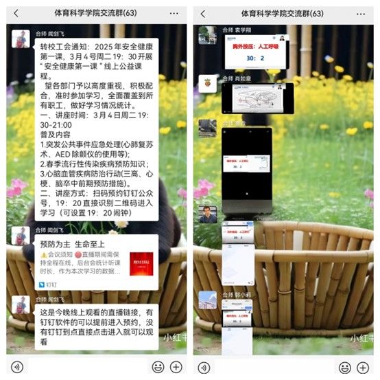 云端健康课堂,构建防护屏障。学院分工会组织学院教职工收看“安全健康第一课”线上公益课程,在线学习突发公共事件应急处理、春季流行性传染疾病预防知识、心脑血管疾病防治知识,课程采用“直播”模式,通过情景模拟演示、在线答疑互动,帮助教职工提升健康管理能力。