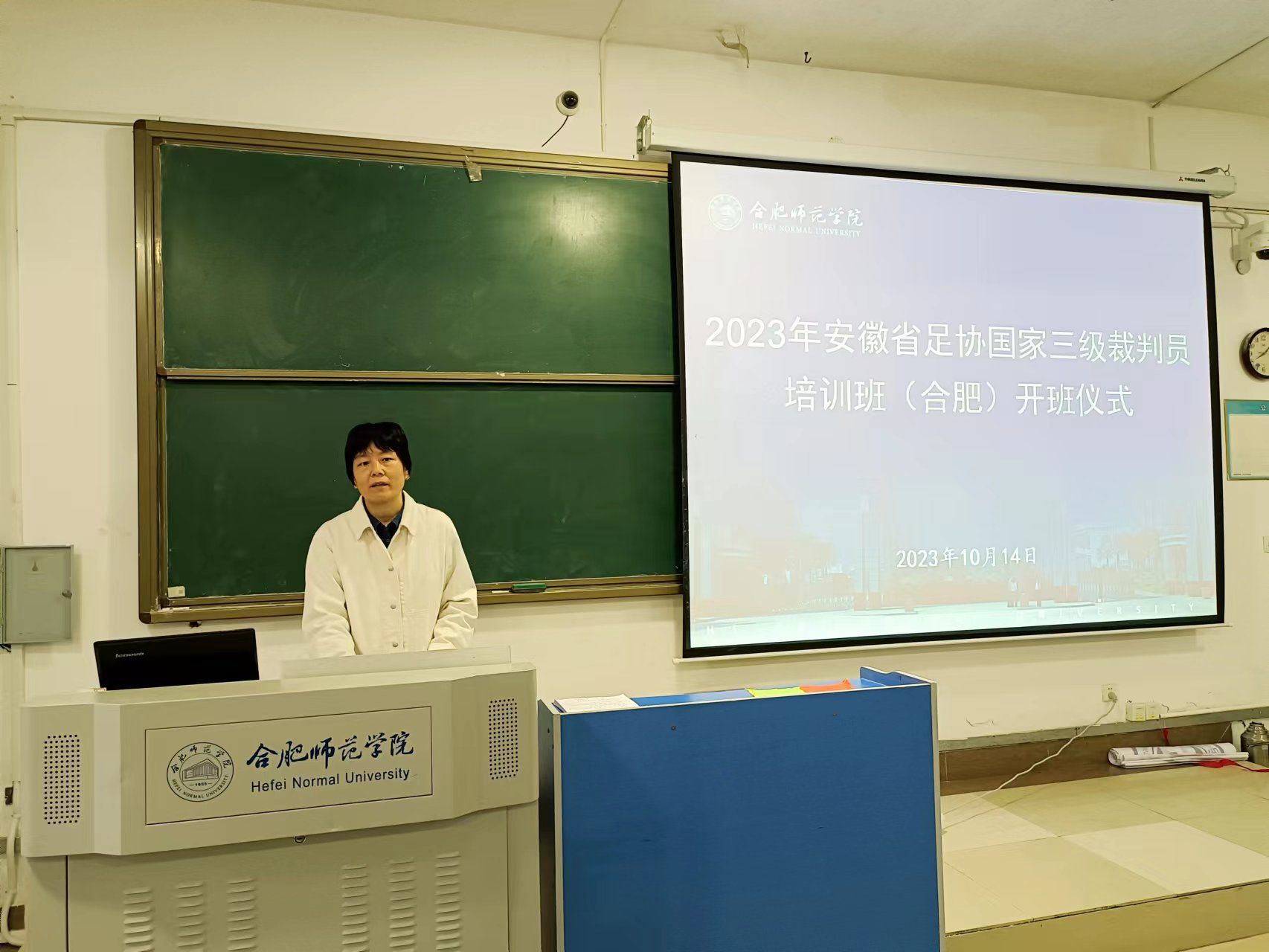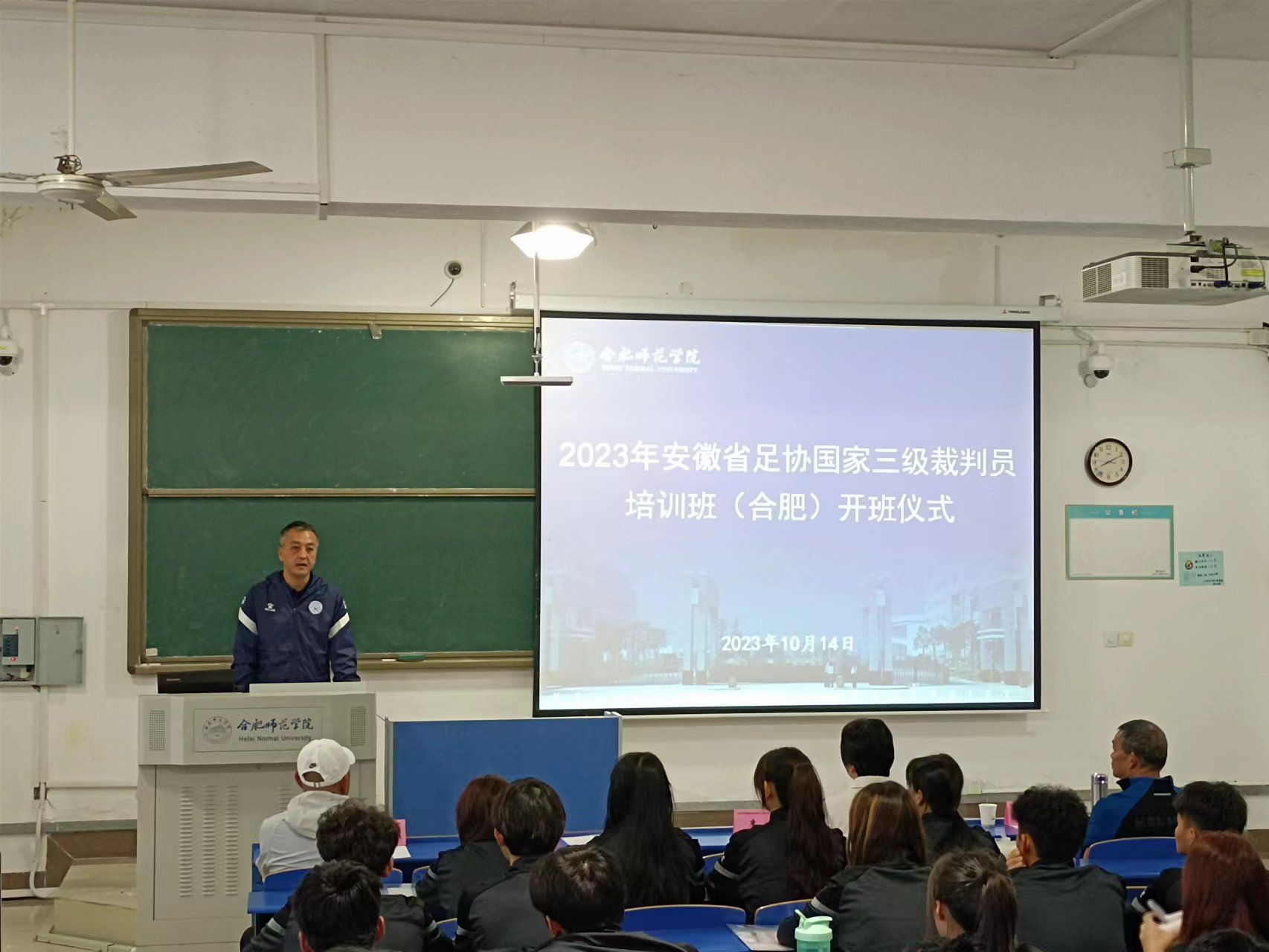 开班仪式上,席莉、王欣分别以“安徽省足协国家三级裁判员培训班开班背景及学院人才培养目标设置”“举办安徽省足协国家三级裁判员培训班的意义和学员管理”为主题做了专题发言。邵安强向参训学员们介绍了本次的培训具体要求。