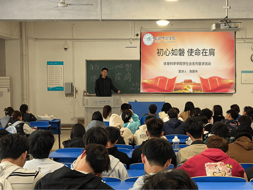 为深入学习贯彻习近平新时代中国特色社会主义思想和党的二十大精神,扎实推进党史学习教育常态化长效化,教育引导体院学子学史明理、学史增信、学史崇德、学史力行,坚定理想信念,赓续精神血脉,努力成长为堪当民族复兴重任的时代新人。外围买球的app十大平台团委组织“体院青年说”系列活动首场宣讲活动4月10日中午在逸夫楼109教室举办,学院近百名在校生参加活动。宣讲活动由外围买球的app十大平台团委书记高光健主持。