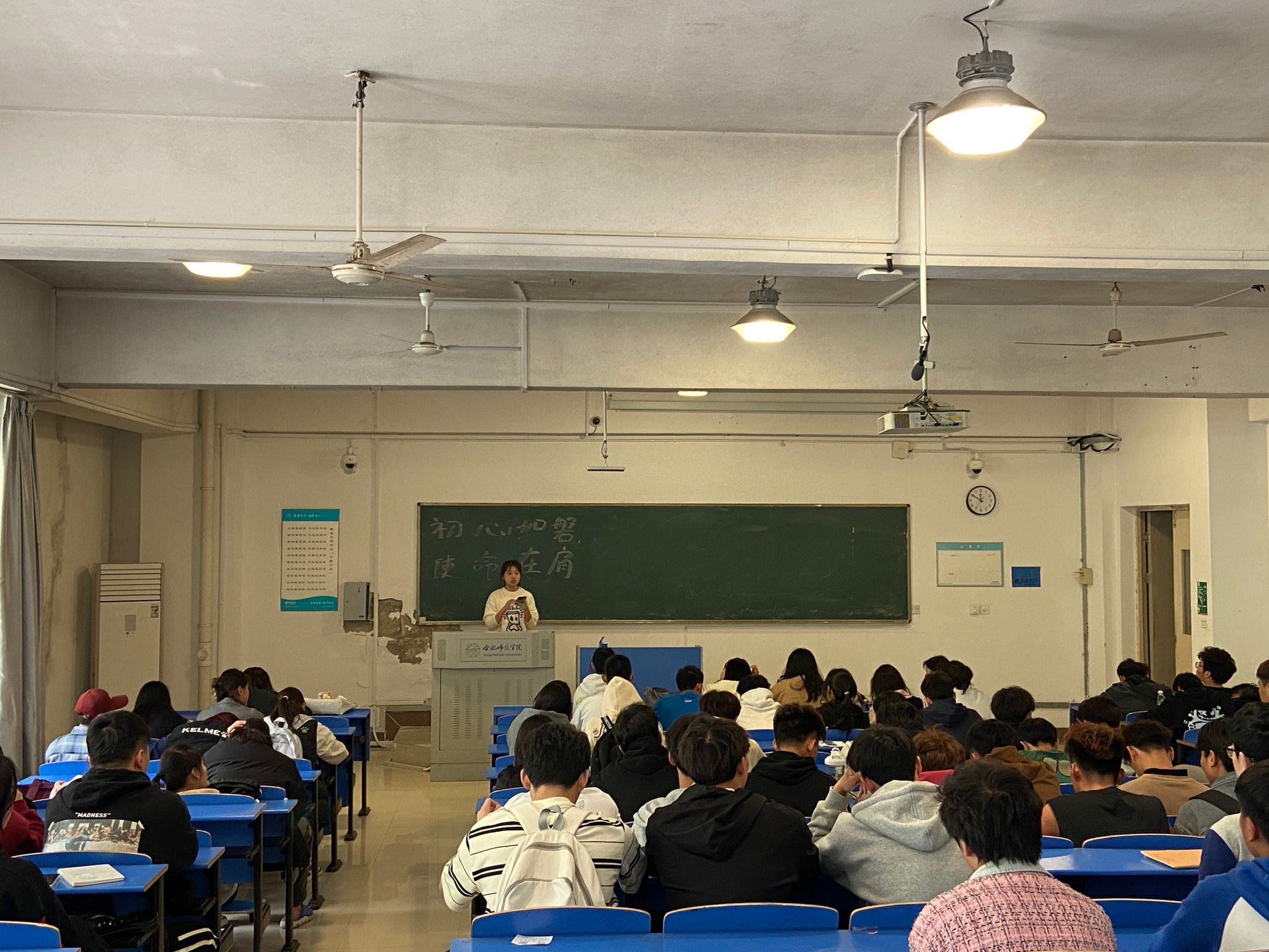 2023级运动训练专业陈郡冉以“初心如磐、使命在肩”为主题进行宣讲,她带领大家回顾了党的光辉历程和伟大成就,强调了初心使命对于个人和集体发展的重要性,并结合身边学习、训练和志愿服务等方面的优秀案例,讲述坚守初心、践行使命的感人故事。每个故事激励着在场每一位同学,让大家深刻感受到初心使命的力量。交流研讨环节,同学们纷纷讲述自己对坚守初心,践行使命的认识和理解。大家纷纷表示,通过此次活动更加明确了自己的初心和使命,将在今后的学习和生活中不断努力,向榜样学习,立志高远、努力学习、刻苦训练,不断磨练自身本领,在实现中华民族伟大复兴的中国梦的生动实践中放飞青春梦想。