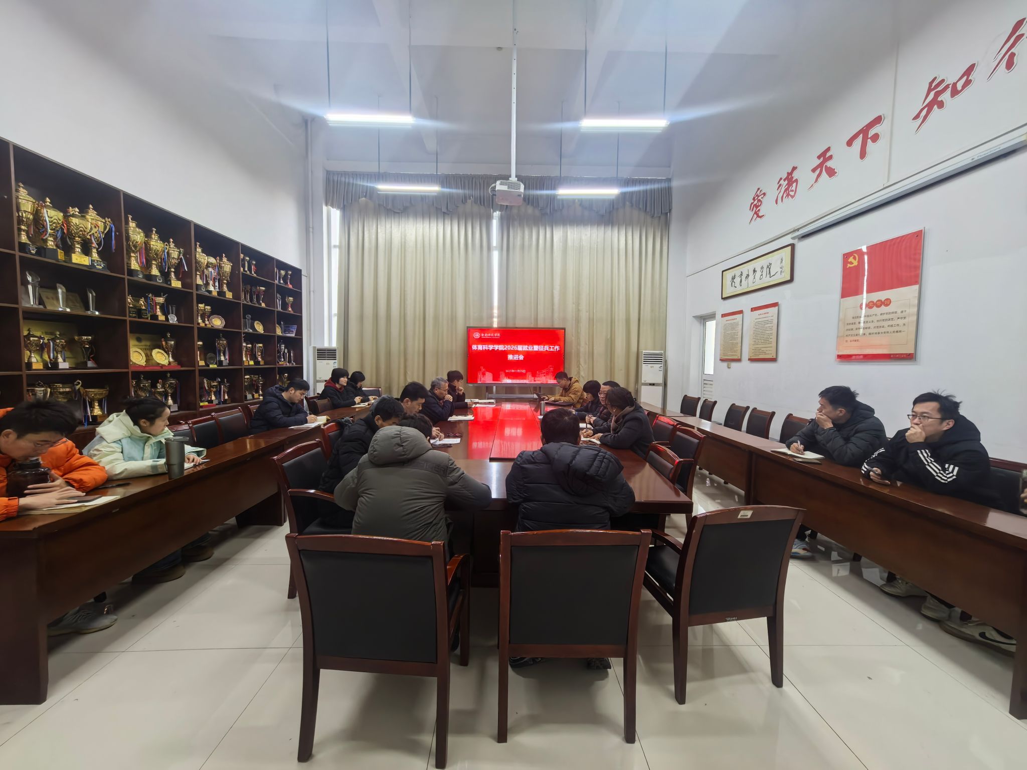 12月29日上午,外围买球的app十大平台在锦绣校区体育馆会议室召开2026届毕业生就业暨征兵工作推进会,全面总结学院2025届毕业生就业工作,系统部署2026届毕业生就业与大学生征兵工作。学院党政领导班子成员、党委委员、各系部主任及副主任、全体辅导员共同参会。