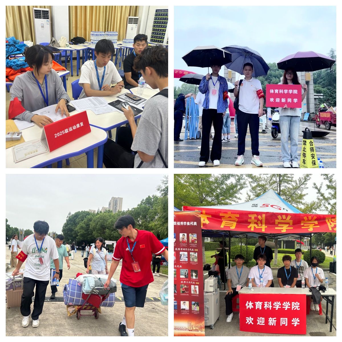 为提升迎新服务质量,学院广泛动员师生力量,面向全院招募47名学生志愿者,并特别组织博士党员教师加入志愿服务队伍。师生共同组建起一支热情专业的迎新服务团队,其中设立9个学生党员先锋岗。博士党员教师志愿者们充分发挥专业优势与模范带头作用,在现场为新生及家长提供学业咨询和人文关怀;学生志愿者们则以饱满的热情和细致的服务,为新生提供从报到引导、材料审核到住宿安排的“一站式”帮助,充分展现了体科师生团结奉献、积极向上的良好风貌。