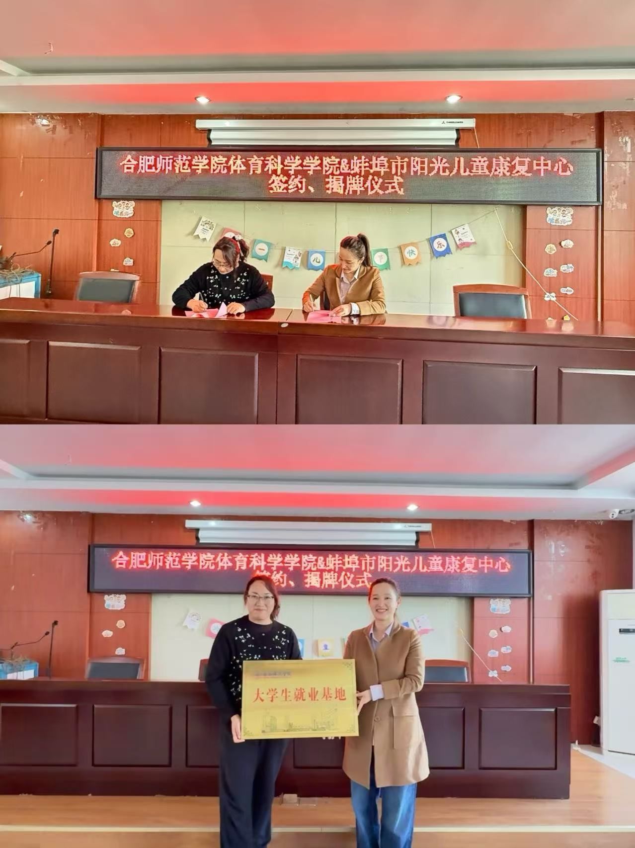 随后,一行人随即前往蚌埠市阳光儿童康复中心进行考察交流。康复中心负责人黄蕾热情接待,并陪同参观了各类康复教室,观摩了在训儿童的实际课堂。黄蕾主任详细介绍了中心的服务对象、康复理念及日常运作。座谈中,双方重点围绕特殊儿童感觉统合训练的专业技术方法,以及运动康复人才在该领域的应用与需求进行了深入交流。黄蕾主任明确表达了中心对具备专业知识与实践能力的运动康复人才的迫切需求。基于共同的愿景与发展目标,外围买球的app十大平台与蚌埠市阳光儿童康复中心现场正式签署共建毕业生就业实习基地协议,并完成授牌。