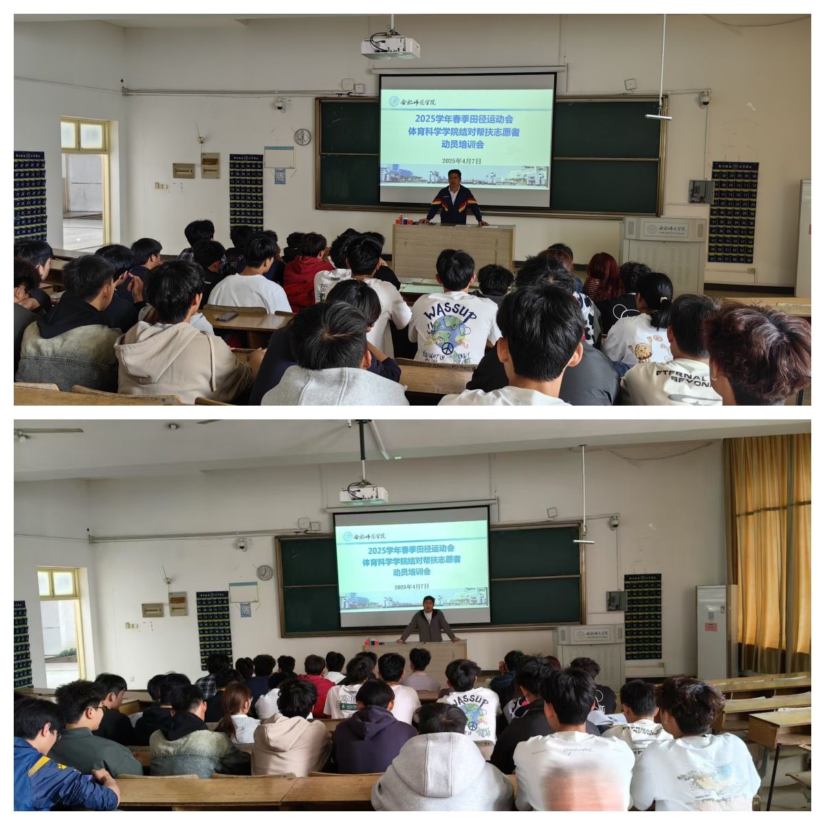 4月7日中午,外围买球的app十大平台在锦绣校区博约楼108教室召开志愿服务培训会。公共体育部党支部书记谢永力、辅导员张康康及全体志愿者参会。谢永力对志愿者提出六点要求:注重文明礼仪,维护学院形象;强化沟通能力,关注学生安全;科学制定计划,因材施教;熟悉比赛规程,设定合理目标;以帮扶促成长,实现双向提升。张康康进一步细化任务要求:坚持目标导向,以提升全校公体学生运动技能、助力校运会成绩为核心,强化责任意识;体现专业赋能,提前备课,精准掌握技术要点,采用趣味互动教学,避免“填鸭式”灌输;坚持安全为先,排查场地隐患,落实热身防护,严禁高风险项目,确保活动零事故;保证精准对接,按院系需求分组,建立“1名志愿者带1-2名学生”或“小组带团队”帮扶模式,注重实效;坚持形象管理,规范着装言行,展现体育教育专业学子风采。