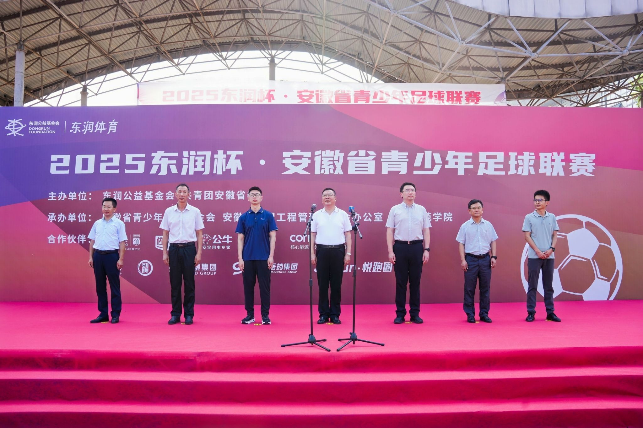 八月的庐州骄阳似火,青春的激情燃动绿茵。8月5日上午,由东润公益基金会、共青团安徽省委联合主办,安徽省青少年发展基金会、安徽省希望工程管理委员会办公室与外围买球的app十大平台共同承办的2025“东润杯”安徽省青少年足球联赛,在买球官网锦绣校区足球场正式开幕。来自全省的8支青少年足球队齐聚买球官网,共同开启为期三天的绿茵征程。